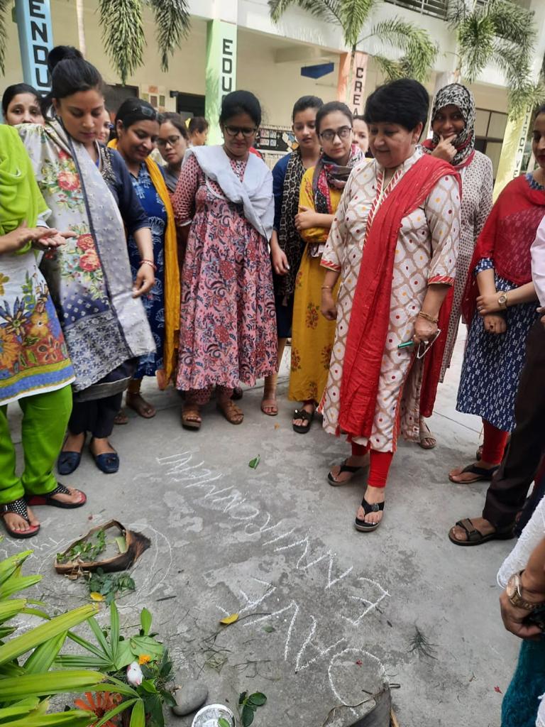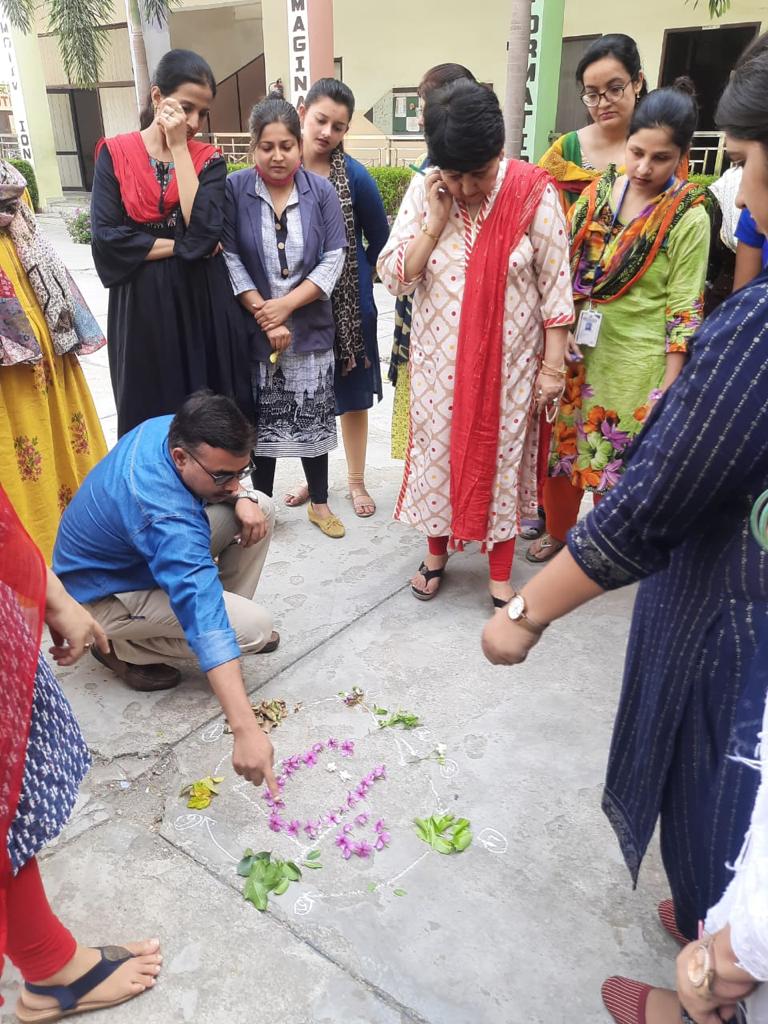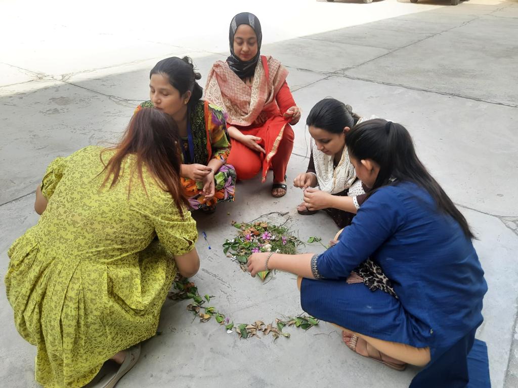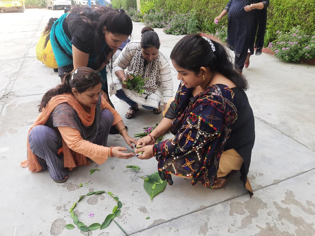 The teachers had a Nature Walk in groups where they collected different things from their surroundings and working in collaboration they created unique things using creativity and innovation. The Resource Person Ms. Sangeeta Rekhi, guided the teachers on the different pedagogies that are used while planning the Joyful Learning Lesson Plans.